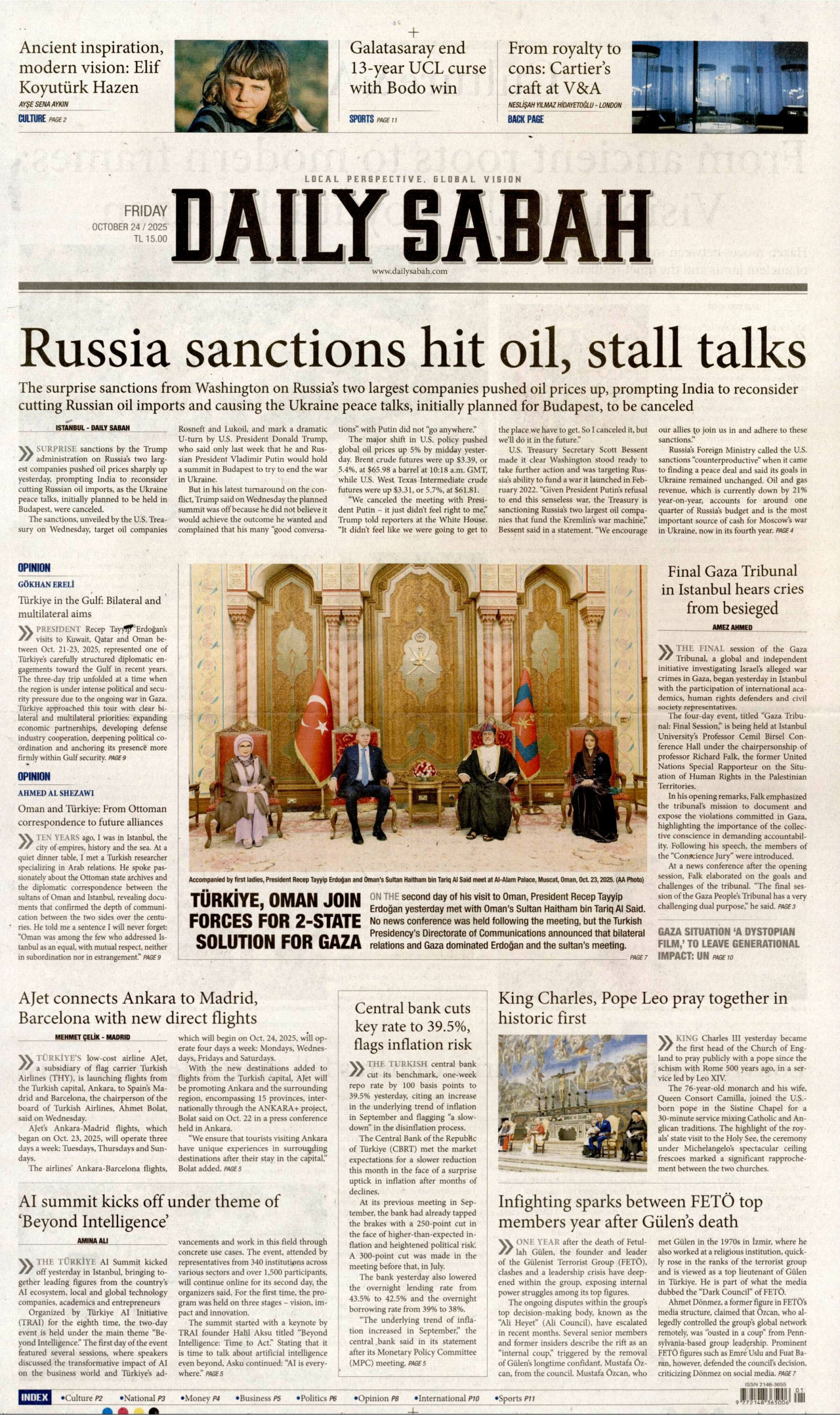 DAİLY SABAH Gazetesi 24 Ekim 2025, Cuma Günü Manşeti