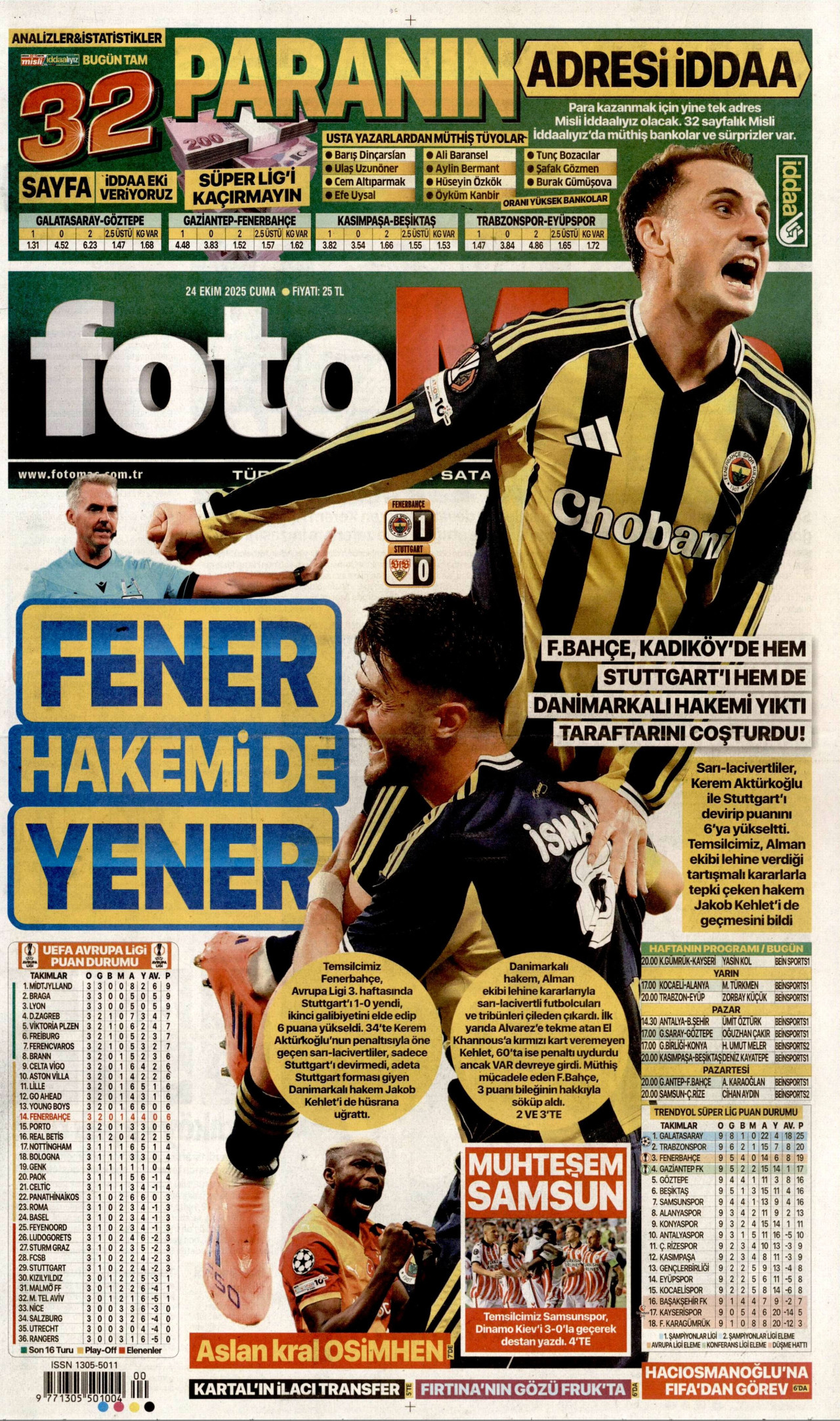 FOTOMAÇ Gazetesi 24 Ekim 2025, Cuma Günü Manşeti